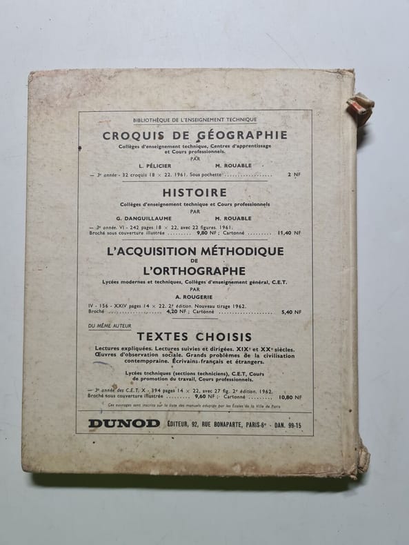 Belin. Non daté. In-8. Relié. Etat passable, Plats abîmés, Dos abîmé, Intérieur acceptable. 167 pages. Illustré de nombreuses gravures en noir et blanc et cartes en couleur dans le texte. Texte sur 2 colonnes. Dos manquant. Plats tachés, se détachant. Cahiers se détachant. Annotations au dos du 1er plat (ex-libris).. . . . Classification Dewey : 372.89-Livre scolaire : histoire / géographie