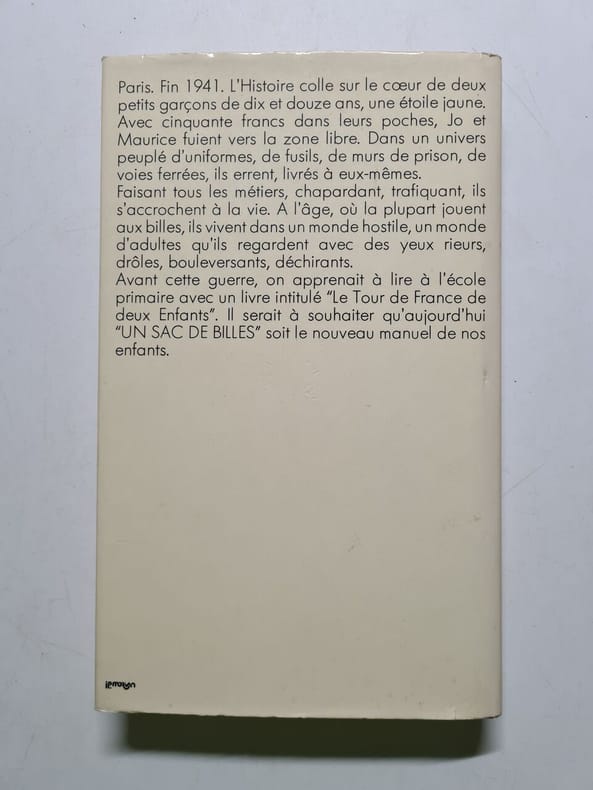 Nouvelle édition pour laquelle pour laquelle il n'a pas été tiré de grands papiers. Bel exemplaire. Envoi autographe signé de Joseph Joffo : "A Jérome et Arnaud, un sac de billes, témoignage de mon enfance. Jo Joffo". - Photographies et détails sur www.Edition-Originale.com -