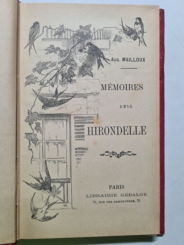 Paris librairie Théodore lefevre sd (XIXe) in-8,pleine percaline de l'éditeur rouge,noir et or, premier plat illustré d'une hirondelle (plaque signée Engel) 272pp illustrées in et ht ,dos orné , toutes tranches dorées, 352 pp., nombreuses ill. in et h.-t. en noir. P., Théodore Lefèvre, s.d.