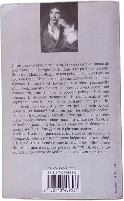 Larousse / Petits classiques larousse 1990 199 pages in12. 1990. Broché. 199 pages. Tartuffe est une comédie en cinq actes de Molière qui met en scène un imposteur Tartuffe feignant la piété pour s'introduire dans une famille bourgeoise dirigée par Orgon et en manipuler les membres pour profiter de leur fortune. La pièce interdite à deux reprises à sa création en 1664 dénonce l'hypocrisie religieuse et les faux dévots à travers des situations comiques et des dialogues percutants