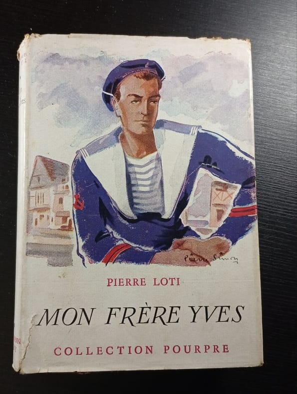 Paris Calmann Lévy 1925. 343 pp. In-12. Relié. En bon état. 1 volume. "Le roman raconte l'histoire d'un jeune marin breton, Yves Kermadec, lequel a hérité de l'alcoolisme qui mine sa famille depuis des générations. Il est pris en amitié par un officier du même âge que lui, le narrateur Pierre (Loti), qui fait serment devant la mère âgée du jeune homme de l'aider et de le protéger : « Je jure de veiller sur lui toute ma vie, comme s'il était mon frère. » D'où le titre du roman. Yves se marie, a un fils prénommé Pierre, comme son ami, et après bien des hauts et des bas, il renoncera à l'alcool et finira par se ranger". Mon frère Yves est le seul roman de Loti qui se termine bien, même si la dernière page laisse entendre qu'une rechute est toujours possible.Une bonne partie de l'action se déroule à Brest, ville que Loti détestait, et qui est présentée comme un véritable « enfer », le siège de tous les vices et toutes les tentations, tandis que la pleine mer est une sorte d'Eden où les marins retrouvent innocence et pureté. Loti donne de la campagne bretonne et de ses habitants une image flatteuse et idéalisée.TIRAGE LIMITÉ à 2000 exemplaires numérotés sur papier vélin du marais. Celui-ci est un des exemplaires numérotés.