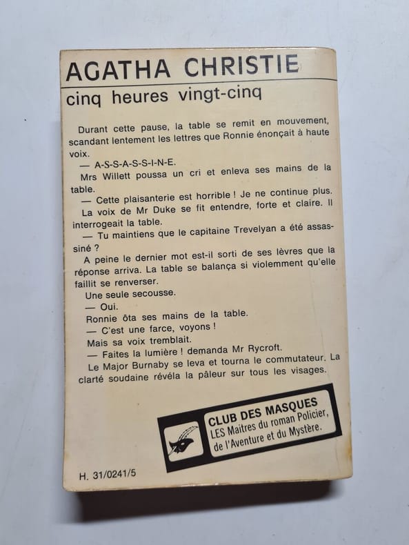 1974 1974. Agatha Christie - Cinq Heures Vingt-Cinq / Club des masque 1974