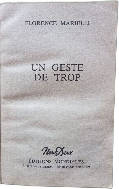 1989 1989. Florence Marielli : Un geste de trop / Nous Deux 1989 LBN6