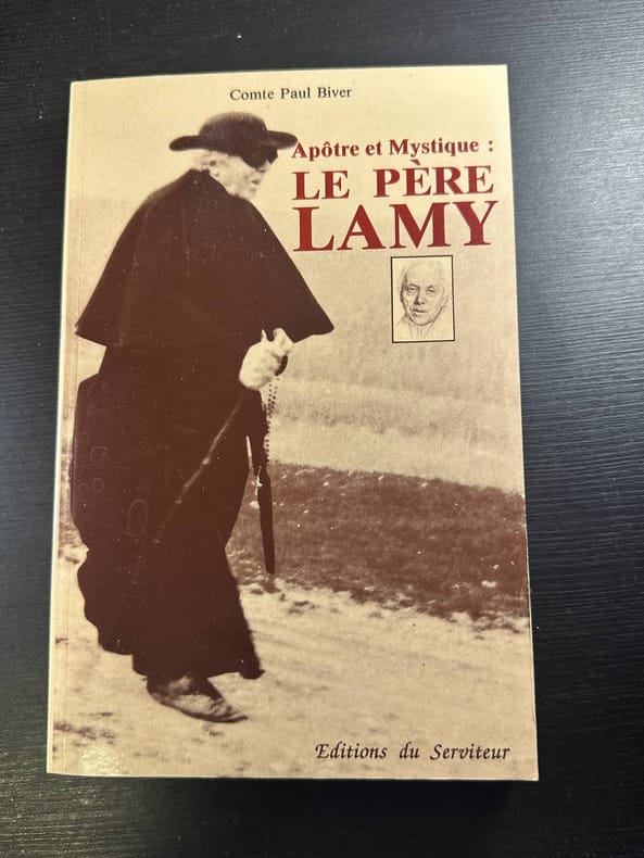 Le Père Lamy distinguait la main de dieu partout où elle se rendait présente, et surtout,il faisait la volonté de dieu. Sa conformité perpétuelle et amoureuse au bon vouloir divin forme l'unité de cette belle histoire vécue, malgré la diversité très grande des situations où nous apparaîtra son héros.