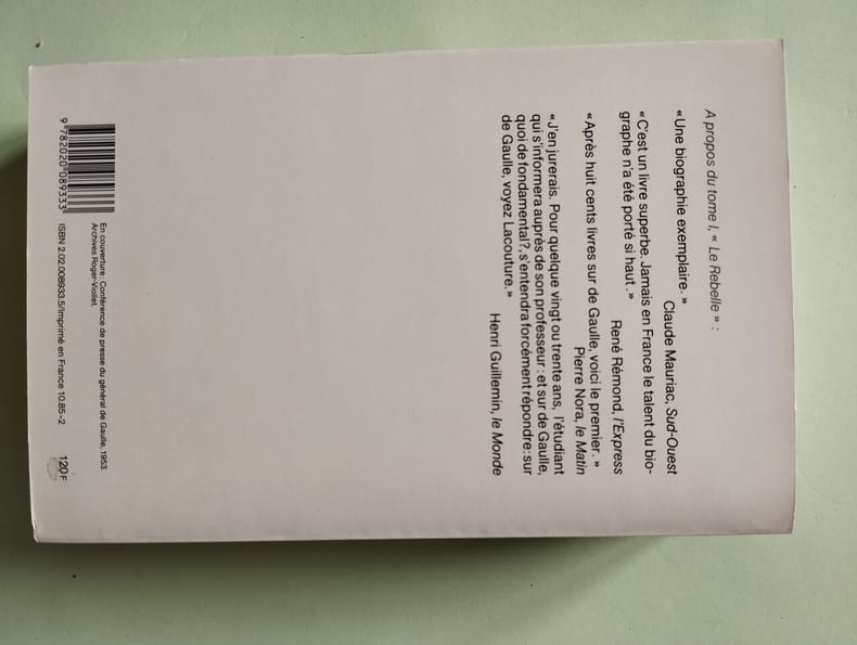paris Les Editions Universelles 1945 -in-4 broché un volume, broché crème (paperback) in-quarto editeur (21,2 x 26,6 cm), dos muet,1ère de couverture rempliée imprimée en noir et illustrée d'une Croix de Lorraine en vert, Edition Numérotée, tirage limité à 950 Exemplaires, un des exemplaires sur savoyeux O. C. F. (N°121), orné de 4 fac-similés de lettres du Général + 9 photographies hors-texte en noir, 54 pages, 1945 à Paris Les Editions Universelles Editeur,