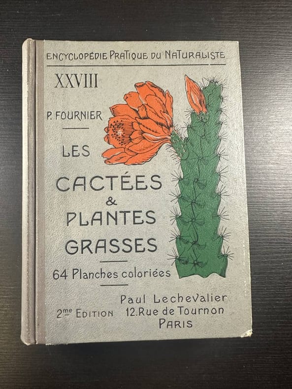 Paris Association '' Cactus ''. Association Française des Amateurs de Cactées et de Plantes Grasses 1946 grand in 8 (26,5x18,5) 4 volumes reliures demi basane rouge à coins, dos à nerfs orné de fleurons dorés. Volumes illustrés de nombreuses figures et illustrations photographiques. Premier volume: 4, 15, 15, 15, 31, 15, 16, 16, 16, 16, 16 (2), et 130 pages. Second volume: 76 pages, 128 pages, 280 pages (dont hors-texte en couleurs contrecollés). Troisième volume: 280 pages (3), et pages 1 à 229. Quatrième volume: (1 feuillet d'index) pages 230 à 261, 200 pages, et 156 pages. Tête de collection: Rare corpus iconographique. Années 1946 (N°1) à 1961 (N°72), de la revue '' Cactus '', publiée par l'Association Française des Amateurs de Cactées et de Plantes Grasses. Bel exemplaire ( Photographies sur demande / We can send pictures of this book on simple request )