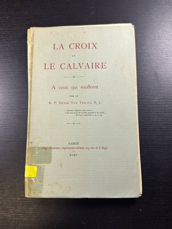 A Paris, chez Brajeux (du fonds Babuty), 1816. In-12 plein veau, dos lisse orné, pièce de titre, XVI + 342 pp. Frontispice + 8 gravures hors-texte (les Stations) (figures en taille douce. Couverture frottée, petits incidents, intérieur en bon état avec quelques rousseurs.