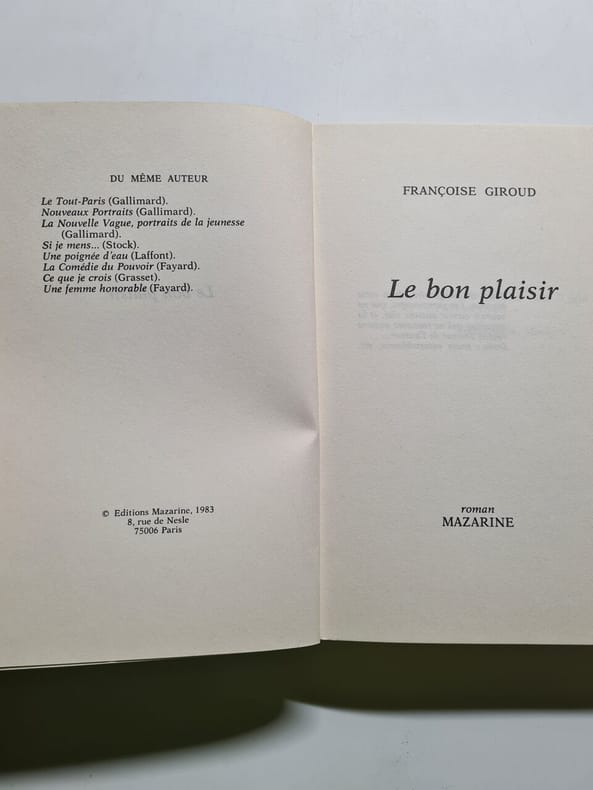 Editions Mazarine 1983 1983. Françoise Giroud: Le bon plaisir/ Editions Mazarine 1983 . Françoise Giroud: Le bon plaisir/ Editions Mazarine 1983