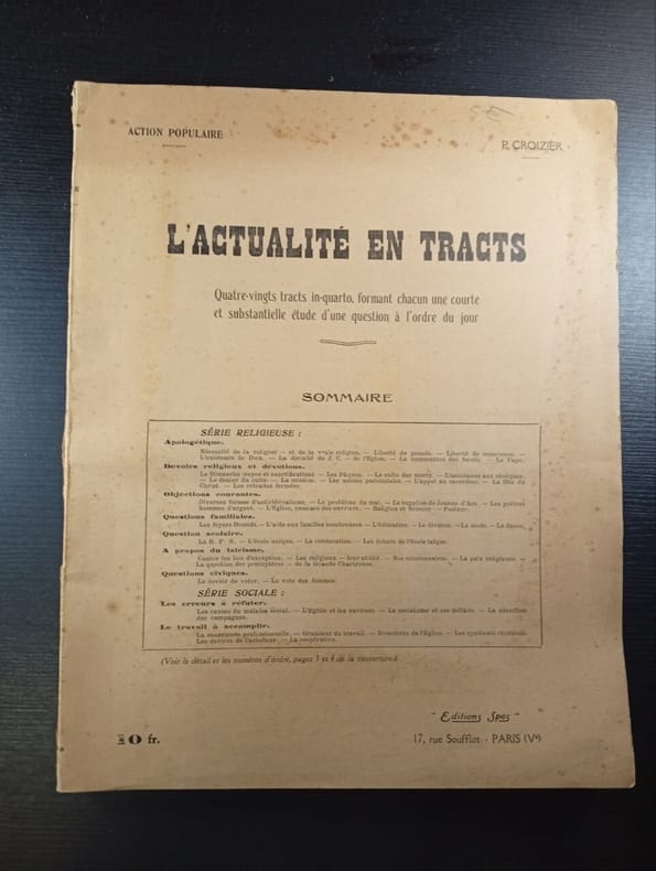 Editions SPES, 1934. Format 22x27 cm, broche. Je joins 5 tracts volants de 2 ou 4 pages. Bon etat.