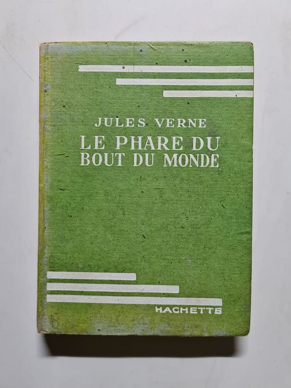 Première et seule édition in-8 illustrée par L. Benett comportant également de nombreuses photographies. Cartonnage éditeur Hetzel "à l'éventail et à l'éléphant" en pleine percaline rouge signé Engel, premier plat polychrome signé Engel, second plat de type "i" comme indiqué par Jauzac, dos au phare, pages de garde bleues d'origines, toutes tranches dorées. Gardes bleues d'origine ombrées marginalement comme habituellement, une pliure et une micro-déchirure sur la première garde, petites taches noire et de décoloration sur le second plat, tampon imprimé de bibliophile en tête de la page de faux-titre. L'Invasion de la Merest un roman d'aventure se déroulant en Tunisie et évoquantun projet authentique, représentatif de l'esprit colonial français. Dans lesannées 1880,François Élie Roudaireprojette de noyer une partie du désert duSaharasous les eaux de la Méditerranée, en creusant un canal depuis legolfe de Gabèsjusqu'auxchotts(via lechott el-Jérid). Le projet finit par être abandonné en raison des difficultés, mais Jules Verne lui donne une suite romanesque. Le Phare du bout du mondevoit quant à lui son action se dérouler en Amérique du Sud. - Photographies et détails sur www.Edition-Originale.com -