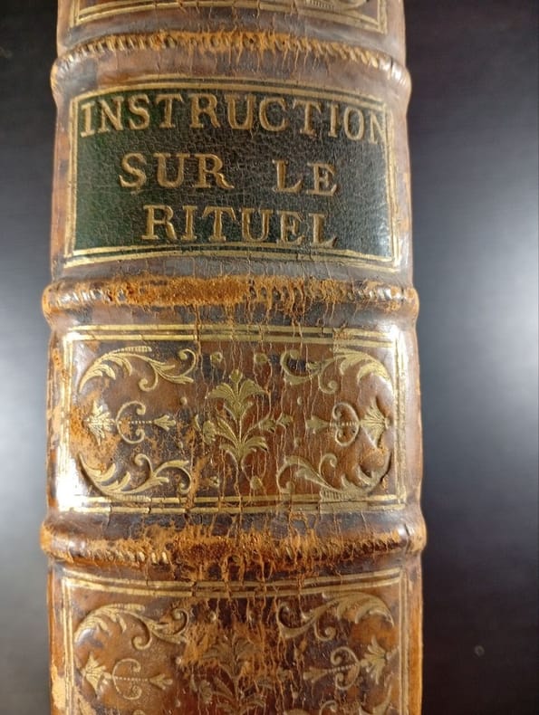 1 vol. in-18 cartonnage d'époque plein vélin moucheté, Manuel des Théophilanthropes ou Adorateurs de Dieu et amis des hommes, Contenant l'exposition de leurs dogmes, de leur morale et de leurs pratiques religieuses avec une instruction sur l'organisation et la célébration du culte, troisième édition, Chez l'Auteur, Paris, An VI, 53 pp. [ Suivi de : ] Instruction élémentaire sur la morale religieuse, par demandes et par réponses, nouvelle édition, Chez l'Auteur, Paris, An VI, 35 pp. [ Suivi de : ] Rituel des Théophilanthropes, Contenant l'ordre de leurs différens exercices, et le Recueil des antiques, Hymnes et Odes adoptés dans les différens temples, tant de Paris que des départemens, Chez l'éditeur, Paris, An VI, 96-2 pp. [ n° XIV Hymne de l'Automne], 8 pp. [n° XV Hymne de l'Hiver, XXIV, Fête de la Fondation de la République, XXXI Hymne d'Actions de Grâce), pp. 101-108 [ Table des matières du Rituel ], pp. 7-8 [ Hymne XXVIII Fête de la Liberté ]