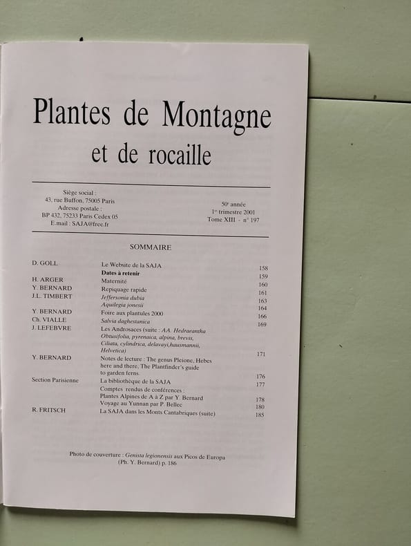 Société des Amateurs de jardins alpins Revue 2009 In-8 (15,4 x 24 cm), revue dos agrafé, paginé de 154 à 188, illustrations en couleurs ; très bon état général. Livraison a domicile (La Poste) ou en Mondial Relay sur simple demande.