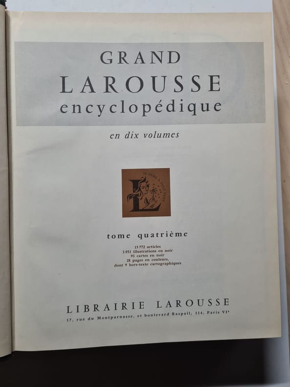"Larousse. 1970-1975. In-4. Relié. Bon état, Couv. convenable, Dos satisfaisant, Intérieur frais. Entre 350 et 500 pages par volumes - texte sur 3 colonnes - nombreuses illustrations, cartes en noir et blanc dans et hors texte - nombreuses planches en couleur - dos à 2 nerfs - titre, tomaison, titre de la tomaison et ""soleil"" dorés sur le dos. . . . Classification Dewey : 30-Encyclopédies générales"