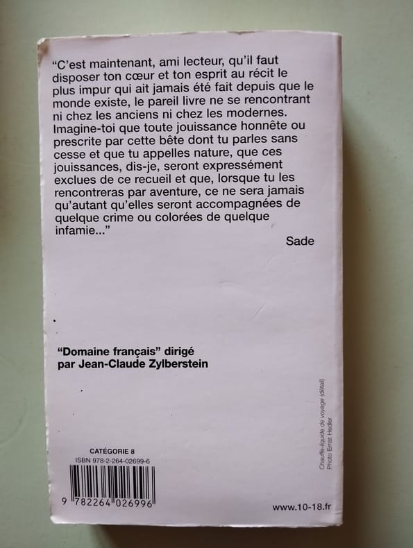 Edition originale publiée en 1904 à Berlin par Max Harrwitz. Un des 160 exemplaires imprimés sur vergé à la forme (justifié n°97) sur un tirage total de 200 exemplaires.La traduction et les notes sont loeuvre du docteur Iwan Bloch (1872-1922), biographe de Sade, dissimulé sous le pseudonyme dEugène Dühren. Médecin, sexologue et psychiatre allemand, Bloch avait acquis le célèbre manuscrit rédigé par Sade en 1785 à la Bastille. Cet extraordinaire manuscrit, composé de 33 feuillets collés bout à bout pour former un rouleau de 12,10 mètres de long sur 11,3 cm de large, écrit au recto et au verso, est aujourd'hui conservé à la Bibliothèque nationale de France (BnF). "S'il y a un enfer dans les bibliothèques, c'est pour un tel livre. On peut admettre que, dans aucune littérature d'aucun temps, il n'y a eu un ouvrage aussi scandaleux, que nul autre n'a blessé aussi profondément les sentiments et les pensées des hommes" (Maurice Blanchot).(Dutel, 131. 'Eros invaincu', n° 47. Pia, 'Livres de l'Enfer', 1998, col. 187-189).Quelques minimes épidermures au dos.Très bon exemplaire, très frais, non rogné, témoins conservés.