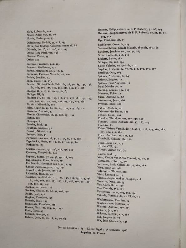 Jaarboek van de vereniging der Antwerpse Bibliofielen. Met facsimile veilingcatalogus bibliotheek Albert Rubens feb. 1658 Ruim een halve eeuw geleden begon de bibliograaf Prosper Arents aan de realisatie van zijn vermetel plan om de bibliotheek van Pieter Pauwel Rubens virtueel te reconstrueren. In 1961 publiceerde hij in Noordgouw een bondig maar nog steeds lezenswaardig verslag over de stand, op dat ogenblik, van zijn werkzaamheden onder de titel De bibliotheek van Pieter Pauwel Rubens. Toen hij in 1984 op hoge leeftijd overleed, had hij vele honderden titels achterhaald, onderzocht en bibliografisch beschreven. Persklaar kon men zijn notities echter allerminst noemen, iets wat hij overigens zelf goed besefte. In 1994 slaagden Alfons Thijs en Ludo Simons erin onderzoeksgelden van de Universiteit Antwerpen / UFSIA ter beschikking te krijgen om Arents' gegevens electronisch te laten verwerken. Lia Baudouin, classica van vorming, die deze moeilijke en omvangrijke taak op zich nam, beperkte zich niet tot het invoeren van de titels, maar heeft ook bijkomende exemplaren opgespoord, Arents' bibliografische verwijzingen nagekeken en aangevuld en de uitgegeven correspondentie van P.P. Rubens opnieuw gescreend inzake lectuurgegevens. Een informele werkgroep, bestaande uit Arnout Balis, Frans Baudouin, Jacques de Bie, Pierre Delsaerdt, Marcus de Schepper, Ludo Simons en Alfons Thijs, begeleidde L. Baudouin bij haar ?monnikenwerk?. Na het verstrijken van het mandaat van de onderzoekster bleef toch nog heel wat werk te verrichten om het geheel persklaar te maken. Elly Cockx-Indestege, Jacques de Bie, Marcus de Schepper en Alfons Thijs behartigden deze laatste productiefase. Anna E.C. Simoni was zo vriendelijk voor Engelse samenvattingen te zorgen. De redactie achtte het nuttig dat Alfons Thijs, via bio-bibliografische gegevens over Prosper Arents, de cultuurhistorische context schetste waarin deze ?poging tot reconstructie van de Rubensbibliotheek? tot stand gekomen is. Zij prijst zich gelukkig dat Frans Baudouin, met zijn grondige kennis van Rubens en diens wereld, bereid was in een verkennende studie te peilen naar de inhoudelijke verscheidenheid en de functionele betekenis van deze kunstenaars- n geleerdenbibliotheek. De titelbeschrijvingen vormen uiteraard de hoofdbrok van de publicatie. Hierbij dient onderstreept dat noch Prosper Arents noch de bewerkers van zijn notities alle beschrijvingen met het boek in de hand konden controleren. In een minderheid van de gevallen moesten zij zich verlaten op bibliografische informatie uit bibliotheekcatalogi, bibliografie n en andere referentiewerken, soms op door bibliotheekverantwoordelijken schriftelijk verstrekte inlichtingen. Bij de aanduiding van bewaarplaatsen van de aangehaalde edities is niet naar volledigheid gestreefd. Enkel die exemplaren zijn vermeld welke door Arents of de bewerkers bij het onderzoek betrokken werden. Zoals uit de bijdrage van Frans Baudouin nog zal blijken, zijn de titels gegroepeerd in een aantal afdelingen, zelf geordend op basis van de toenemende mate van onzekerheid over de vraag of P.P. Rubens van het geciteerde werk wel degelijk een exemplaar in zijn bibliotheek had. In vele gevallen is op basis van het bronnenmateriaal niet uit te maken welke editie van een bepaald werk P.P. Rubens exact bezat. In zulke omstandigheden heeft Prosper Arents, in de regel, voor de (ten aanzien van de bron) meest recente uitgave geopteerd. De gebruiker van het corpus weze er zich dus steeds van bewust dat P.P. Rubens in werkelijkheid eventueel een andere, met name oudere editie van het betrokken werk kan bezeten hebben. Slechts van drie titels uit Rubens' bibliotheek is een exemplaar bekend dat zeker ooit eigendom was van de meester, waar namelijk een handgeschreven opdracht aan P.P. Rubens in voorkomt. Rubens verwierf zijn boekenbezit deels via aankopen bij de Officina Plantiniana. Slechts een deel van de desbetreffende archiefgegevens is door Max Rooses in zijn Petrus-Paulus Rubens en Balthasar Moretus gepubliceerd. Prosper Arents heeft de boekhouding van Moretus er opnieuw op nageslagen. Uit diezelfde journalen transcribeerde Prosper Arents ook de vermeldingen van: 1o een 70-tal boeken in 1628-1633 aangekocht door P.P. Rubens voor rekening van zijn zoon Albert, en 2o een 115 boeken aangekocht door Albert Rubens zelf (althans tot 1640). Elk van die werken heeft Arents tevens, naar best vermogen, ge dentificeerd. We hopen dit materiaal n van de volgende jaren te publiceren. scripties van Max Rooses nagekeken, waar nodig gecorrigeerd en aangevuld en vervolgens alle aldus gevonden titels naar best vermogen ge dentificeerd en er exemplaren van opgespoord. Identificatie was vaak niet gemakkelijk, daar de bibliograaf vaststelde dat in de journalen vermelde formaten, vooral bij kleine boekjes, ?meer naar het uitzicht van het boek dan naar het vouwen van het blad? verwezen.
