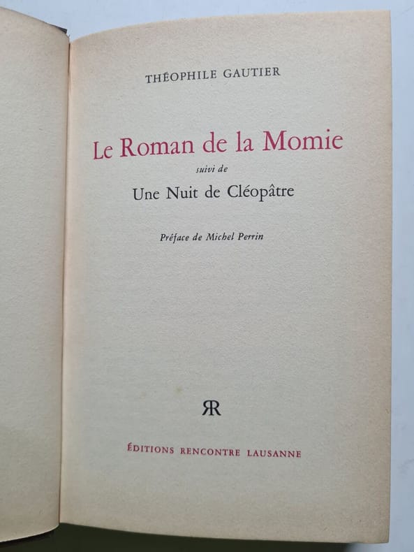 Panthéon 1947 255 pages in8. 1947. broché. 255 pages. Le Roman de la Momie de Théophile Gautier raconte la découverte par deux archéologues de la tombe d'une jeune femme momifiée accompagnée d'un papyrus relatant son histoire. Ce récit mêlant réalité historique et éléments fantastiques plonge le lecteur dans l'Égypte antique pour explorer les thèmes du désir de la beauté et de la fugacité de la vie