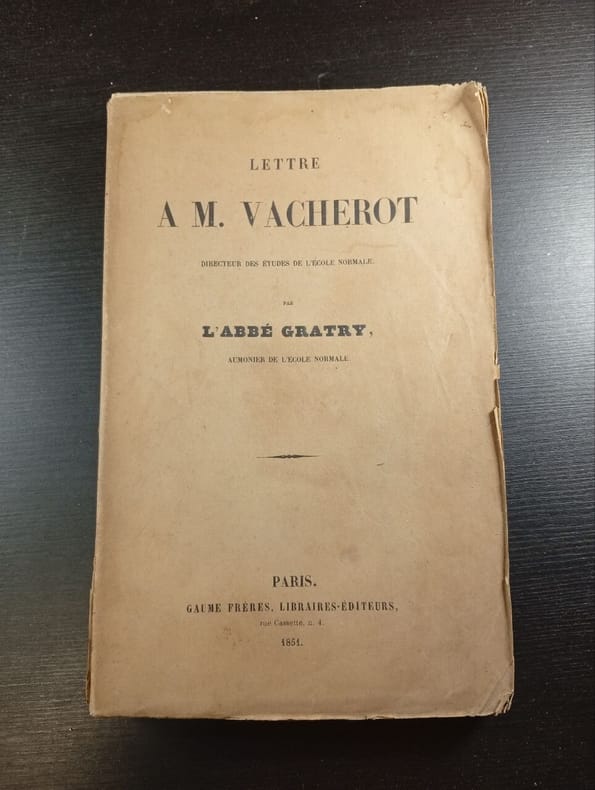 3e édition. Avec la Réponse de M. VACHEROT et la Réplique du P. GRATRY. Classification Dewey : 100-PHILOSOPHIE ET DISCIPLINES CONNEXES