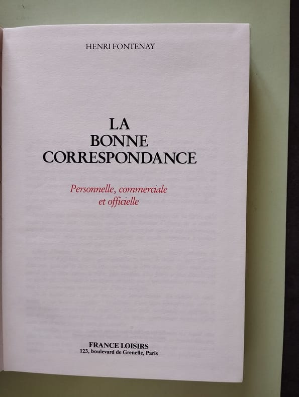 1985 1985. Henri Fontenay: La bonne correspondance personnelle commerciale et officielle/ France Loisirs 1985 . Henri Fontenay: La bonne correspondance personnelle commerciale et officielle/ France Loisirs 1985