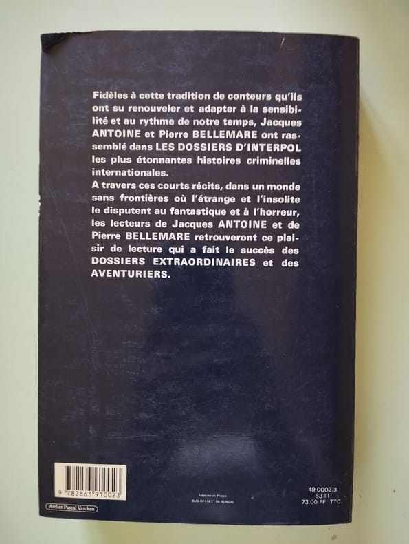 1980 1980. Pierre Bellemare & Jacques Antoine: Les dossiers d'Interpol/ Edition°1 1980 Référence: LMA17G. Pierre Bellemare & Jacques Antoine: Les dossiers d'Interpol/ Edition°1 1980