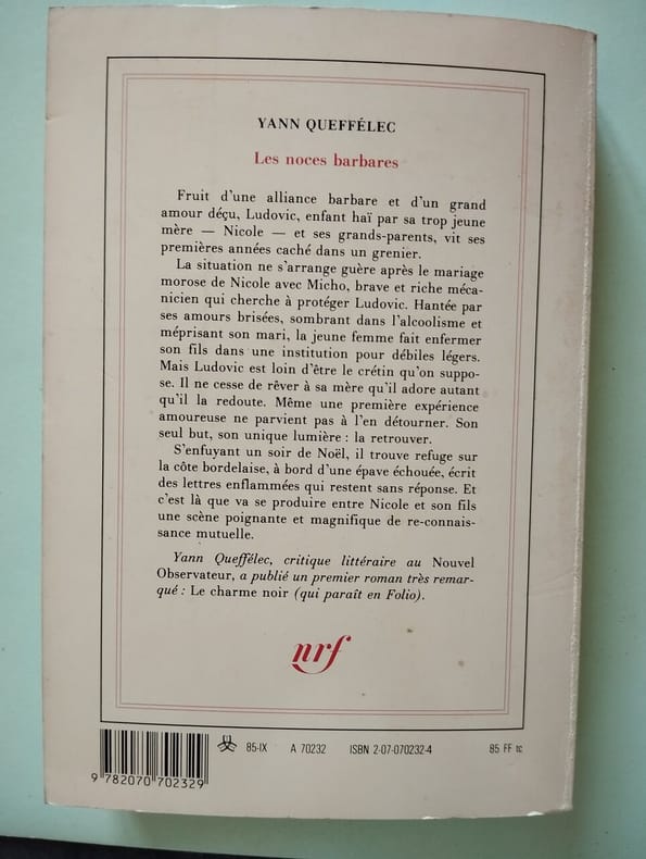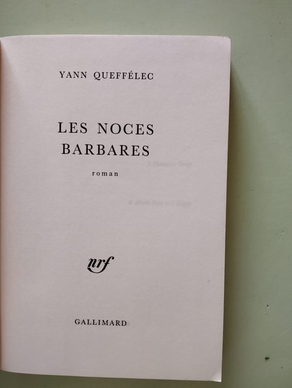Gallimard Nrf 1987 1987. Yann Queffélec: Les noces barbares/ Gallimard-NRF 1987 . Yann Queffélec: Les noces barbares/ Gallimard-NRF 1987
