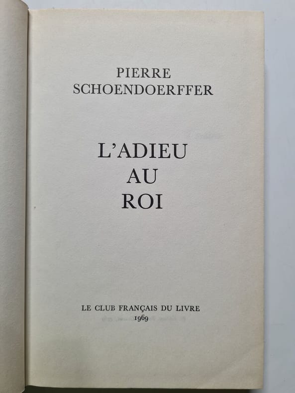 État : Très bon état - Année : 1969 - Format : in 8° - Pages : 299pp - Editeur : Club Français du Livre - Lieu d'édition : Paris - Type : Cartonnage toile éditeur, jaquette illustrée - Collection : Le grand livre du mois - Commander rapidement : https://www.bons-livres.fr/livre/pierre-schoendoerffer/4610-l-adieu-au-roi?lrb