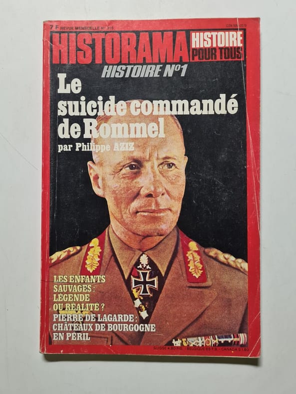 Sommaire : Le suicide commandé de Rommel (1) - les spectacles et l'histoire - les enfants sauvages légende ou réalité ? - le photographe du Kaiser Guillaume II - la passion de Louis XI pour les animaux - mes souvenirs du Procès de Nuremberg (1) - la deuxième guerre punique (1) - portrait du mois Indira Gandhi - ce quart de siècle (16) 1959 - le couronnement de François 1er - victoire alliée dans la jungle birmane 1944 - promenade historique dans Paris sur Seine - chefs d'oeuvre en péril les châteaux de Bourgogne - la bataille navale du Riachuelo. Classification Dewey : 944-Histoire de France varia