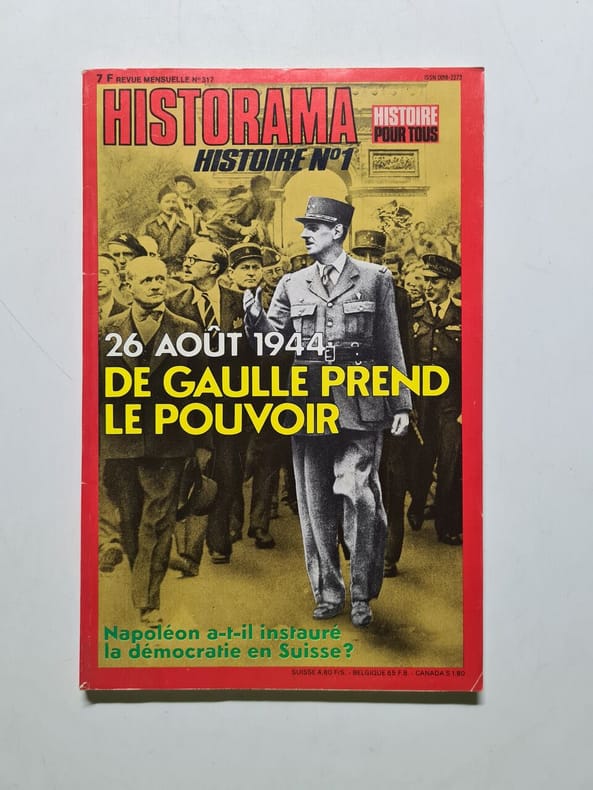Sommaire : 26 août 1944 en quelques heures de Gaulle prend le pouvoir - portrait du mois Jamshid Amouzegar - les spectacles et l'histoire - Napoléon a t il instauré la démocratie en Suisse ? (1) - un président de la République face à la gauche victorieuse - Alexandre Lenoir et les chefs d'oeuvre en péril pendant la Révolution - l'heure des justiciers des maquis (1) - les trois aumôniers du maréchal Pétain - le parisien au temps de Saint Louis - ce quart de siècle 1960 (2) - la mystérieuse Terre des Perroquets. Classification Dewey : 944-Histoire de France varia
