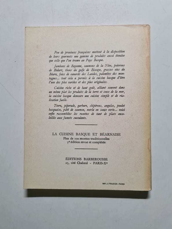 Chez l'auteur. Non daté. In-12. Broché. Etat passable, Plats abîmés, Dos abîmé, Déchirures. 95 pages. Ouvrage très abîmé. 1er plat détaché. 2e plat manquant. Pages 93-95 déchirées, avec manques altérant légèrement la lecture de la page 93.. . . . Classification Dewey : 641.59-Cuisine régionnale