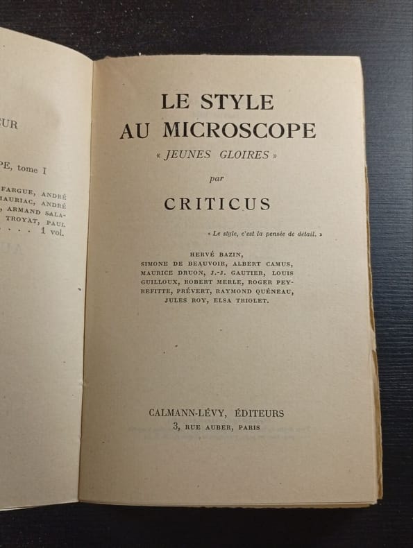 Le style au microscope. (Paris: Editions dec la Nouvelle Revue Critique, 1934). [M.C.: linguistique, littérature, grammaire]