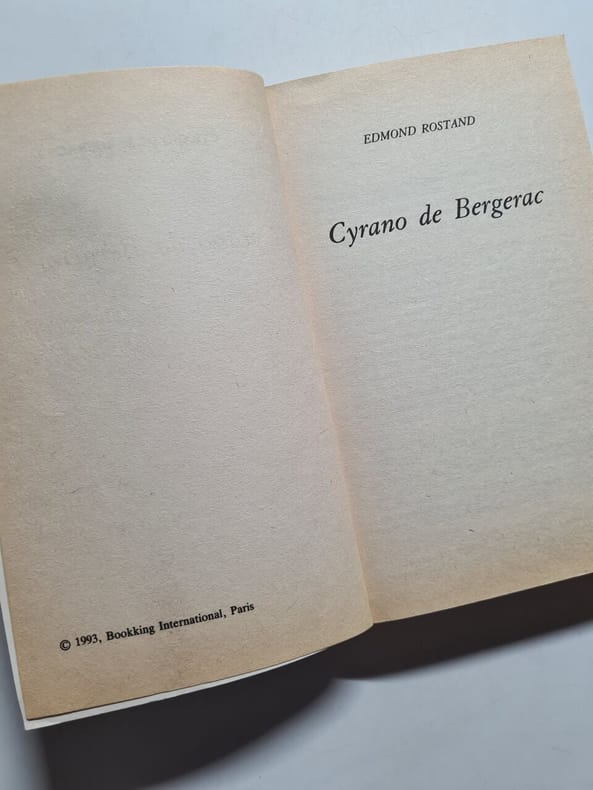 Paris, 1898. 8vo. Contemporary half calf with five raised bands, gilt spine. Single gilt lines to boards. Capitals and corners worn. Inner hinges a bit weak. With Eugen Zabel's book plate to inside of front board, a postcard depicting Edmond Rostand's residense at Cambo, obviously posttamped on verso, pasted on to front free end-paper, contemporary newspaper-clipping about the numerous performances of ""Cyrano von Bergerac"" around the world pasted in to hinge of fly-leaf, where the presentation-inscription (for Eugène Zabel) is written, and finally, the original handwritten address in Rostand's hand, cut out from the envelope in which the book was sent to Zabel, is pased into hinge of half-title. Internally nice and clean.