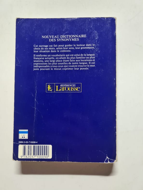 Dictionnaire des synonymes. In English /Dictionnaire des synonymes. Dictionnaire des synonymes de la language francaise par Rene Bailly. Paris. Librairie Larousse. 626p.We have thousands of titles and often several copies of each title may be available. Please feel free to contact us for a detailed description of the copies available.SKUalb18c5b86bb4b652fc.