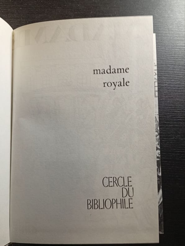 Rombaldi, Cercle du Bibliophile, 1968, pt in-8°, 252 pp, 17 gravures et une photo de l'auteur, avec un entretien inédit avec l'auteur en avant-propos, tiré sur papier spécial Moulin de Pradelle, reliure percaline blanche illustrée de l'éditeur (le décor de la reliure représente Madame Royale et de dauphin Louis XVII, par Mme Vigée-Lebrun), rhodoïd (lég. abîmé), bon état