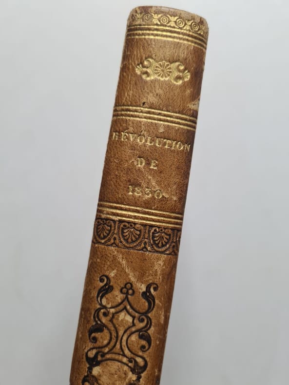 1830 Révolution de 1830 et situation présente (mai 1833) expliquées et éclairées par les révolutions de 1789, 1792, 1799 et 1804 et par la Restauration. 3° édition. Deville-Cavellin / Pagnerre , 2 tomes en un volume 1833,in12 chagrin fauve,dos lisse orné,264-246 pp.