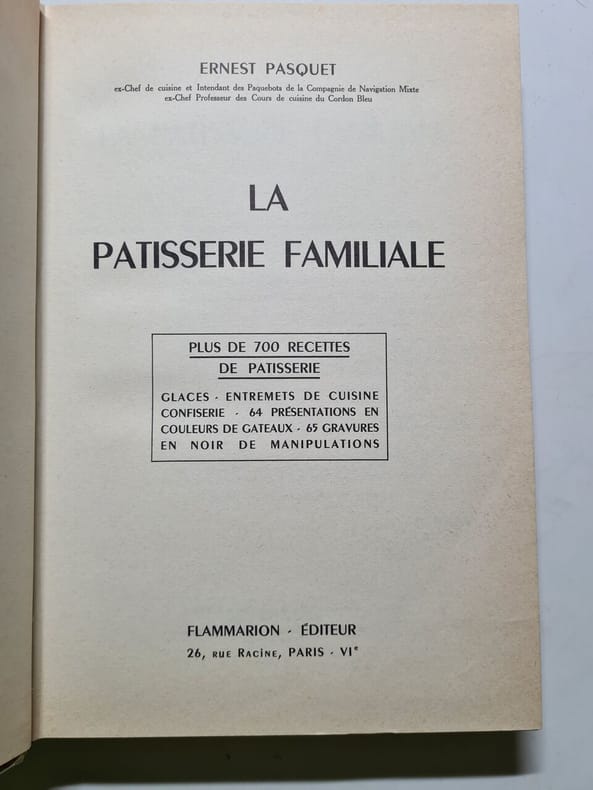 Paris, Flammarion, 1972; grand in-8, 216 pp., cartonnage de l'éditeur. Plus de 700 recettes de patisserie - très bon état.