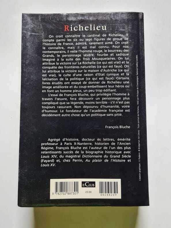 Paris Librairie de Paris Firmin-Didot et Cie. 1899 Bel exemplaire de cette biographie en édition mixte, uniformément relié. Dédicace dans le premier volume à M. Henry Morenne, en souvenir d'une visite de l'auteur à Richelieu en 1931. Les trois volumes sont reliés en demi-maroquin rouge avec des plats marbrés. Titres et décorations dorés au dos. Les trois volumes sont en excellente condition avec peu de manipulations sur le cuir et les planches, bien que le volume 1 soit d'un rouge légèrement plus vif que les deux volumes suivants. Le papier est un papier brillant de haute qualité. Volume 1. 1899. Troisième édition. Ce volume couvre la jeunesse de Richelieu 1585-1614. Inscription de l'auteur sur la première page de garde. Titre - probablement la couverture originale - demi titre et portrait de Richelieu. Deuxième page de titre, texte : pages 1-552. Carte dépliante de la France à la fin du règne d'Henri IV. Les pages sont bonnes, avec quelques rousseurs. Rousseurs modérées sur la carte. Tome 2. Première partie. 1896. Première édition. La route du pouvoir, le premier ministère : 1614-1617. Titre - probablement la couverture originale - demi-titre et portrait de Marie de Médicis. Une seconde page de titre, texte : pages 1-202. Bon état, brillant. Tome 2. Partie II. Sans date - Première édition. Richelieu le rebelle, la crise européenne de 1621, Richelieu Cardinal et Premier Ministre - 1617-1624. Titre - probablement la couverture originale - demi titre et portrait de Charles D'Albert Duc de Luynes. Deuxième page de titre, texte : pages 203-358. Illustration dépliante de la Bataille des Points-des-Cé. Bon état. 255 x 170 mm