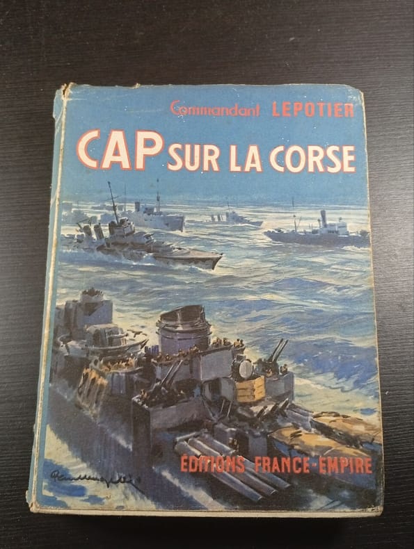 Préface du Vice-Amiral d'escadre Lemonnier Illustré de photographies en noir et blanc hors texte, cet ouvrage est le récit des évènements qui ont conduit, à partir de la Corse, au débarquement de Provence et à la libération du sud de la France en 1944. Table: Escarmouches, L’action dans l’ombre, Tentons la chance, Un modèle de guérilla, Bombes surprises, Le bastion corse, Commandos amphibies, Visites à Pianosa, Il faut que les convois passent, Vingt minutes de feu, De la Corse à l’île d’Elbe, A l’assaut des côtes de Provence, la Flank Force. vol relié, in8, demi cuir, jolie reliure, frottements au dos, 20x15, bel état intérieur, 314pp. Couverture conservée. Paris, France Empire 1950. ref/278