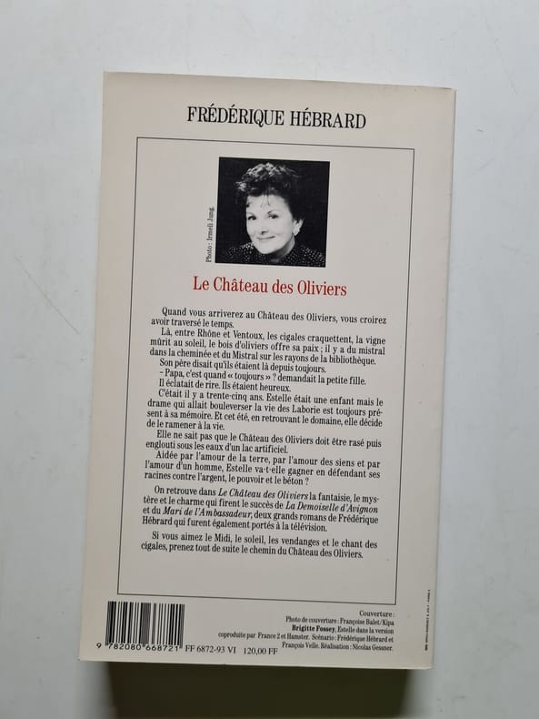 Flammarion 1992 432 pages in8. 1992. souple + jaquette. 432 pages. Au Château des Oliviers là entre Rhône et Ventoux les cigales craquettent la vigne mûrit au soleil le bois d'oliviers offre sa paix ; il y a du mistral dans la cheminée et du Mistral sur les rayons de la bibliothèque.Quand Estelle était une enfant son père lui disait qu'ils étaient là depuis toujours. Ils étaient heureux. C'était il y a trente-cinq ans. Avant le drame...Cet été en retrouvant le domaine elle décide de le ramener à la vie. Elle ne sait pas que le Château des Oliviers doit être rasé puis englouti sous les eaux d'un lac artificiel.Aidée par l'amour de la terre par l'amour des siens et par l'amour d'un homme Estelle va-t-elle gagner contre l'argent le pouvoir et le béton pour défendre ses racines