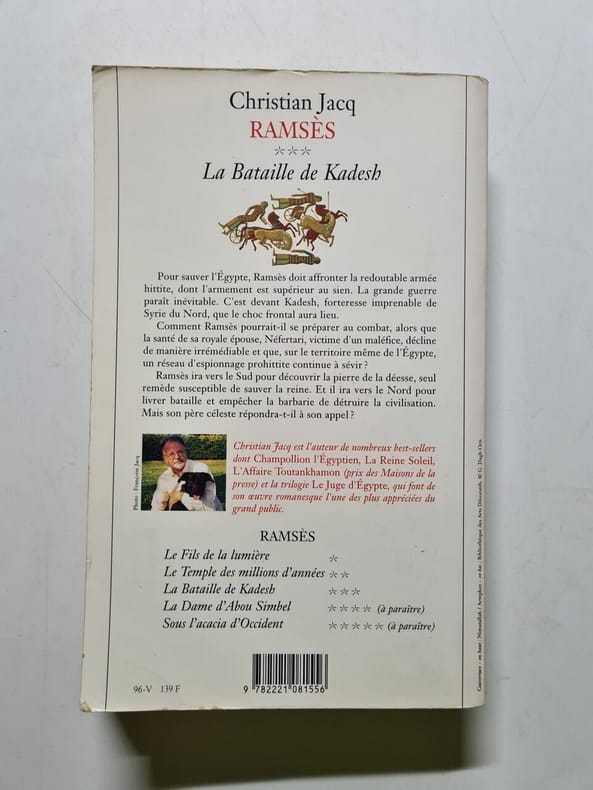 Robert laffont / Romans français 1999 385 pages in8. 1999. broché. 385 pages. Pour sauver l'Egypte Ramsès doit affronter la redoutable armée hittite dont l'armement est supérieur au sien. La grande guerre paraît inévitable. C'est devant Kadesh forteresse imprenable de Syrie du Nord que le choc frontal aura lieu. Comment Ramsès pourrait-il se préparer au combat alors que la santé de sa royale épouse Néfertari victime d'un maléfice décline de manière irrémédiable et que sur le territoire même de l'Egypte un réseau d'espionnage prohittite continue à sévir ? Ramsès ira vers le Sud pour découvrir la pierre de la déesse seul remède susceptible de sauver la reine. Et il ira vers le Nord pour livrer bataille et empêcher la barbarie de détruire la civilisation. Mais son père céleste répondra-t-il à son appel