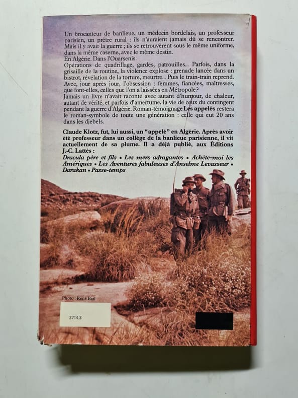 Un des premiers livres sur le contingent en Algérie écrit avec vérité, justesse de ton, rigueur. Les témoignages recueillis montrent des appelés qui, classe après classe, partent pour l'Algérie dans l'indifférence générale. Vingt ans après, l'auteur note, dans le vocabulaire de ses interlocuteurs, la fréquence des mots "humiliation" et "culpabilité". Voir sommaire sur photos jointes.
