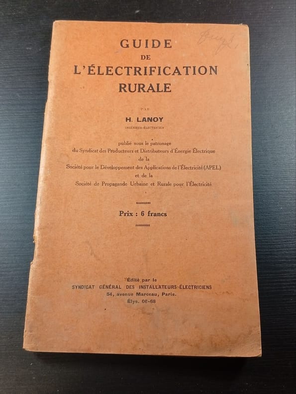 Livre. Edité par le Syndicat général des installateurs électriciens, 1934.