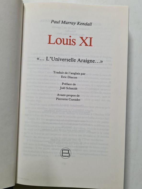 L'histoire de Louis XI est celle d'un homme qui sut imposer ses décisions, qui dut garder sans cesse l'esprit en éveil, plier le temps à ses desseins, être deux fois plus habile et trois plus rapide que ses semblables, et cacher son sens de la comédie derrière les gestes du conformisme. Ce livre nous montre l'image d'un homme aux capacités exceptionnelles, doué d'une personnalité diverse et complexe. Certains le considéraient comme "le plus subtil qui soit" . Pourtant, peu après sa mort, on racontait qu'il s'abreuvait du sang des nouveau-nés au cours de sa dernière maladie, était l'assassin de son frère et se délectait à écouter les cris de ses victimes torturées. En abandonnant la légende pour retrouver la vie, Paul Murray Kendall révèle les vraies dimensions de l'homme, son habileté à charmer, son insatiable curiosité, son goût de la loyauté. Tout cela dans une biographie qui apporte une contribution essentielle à l'histoire du XVe siècle tout en demeurant d'une lecture facile et passionnante. Paul Murray Kendall (1911-1973), spécialiste de la fin du Moyen Âge, a enseigné l'histoire pendant plus de trente ans à l'université de l'Ohio puis à celle du Kansas. Il a consacré plusieurs ouvrages à l'histoire du XVe siècle. — "Publié en anglais en 1971 puis en français en 1974 – un an après la mort de l'auteur –, ce Louis XI est le résultat d'un travail engagé treize ans plus tôt. Le parti pris est évident : réhabiliter une figure devenue une caricature de mauvais homme, de prince tyran, précurseur supposé de l'absolutisme. Par une interprétation extrêmement positiviste, l'auteur brosse un autre portrait du monarque, balayant soixante années d'une époque et d'une vie d'homme, dont plus de vingt ans de règne. Un regard neuf qui donne à propos de cette fin de Moyen Age un autre imaginaire à penser et à Louis XI l'image d'un roi complexe mais brillant. Le tout en près de 600 pages. L'utilisation presque constante des lettres du prince ajoute un aspect intime au récit et gomme ainsi celui, trop « scientifique », qu'aurait pu prendre le livre, tout en apportant des sources encore non exploitées, tant françaises qu'étrangères, qui complètent la charpente d'un propos documenté." (Didier Le Fur, revue L'Histoire)