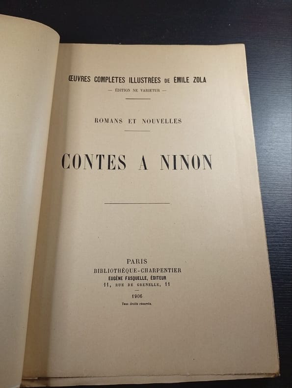 Paris, Bibliothèque charpentier , 1906; in-4, 164/249 pp., cartonnage de l'éditeur. Oeuvres complètes illustées de émile Zola T 18 comprend les titres : les mystères de Marseille / contes a Ninon.