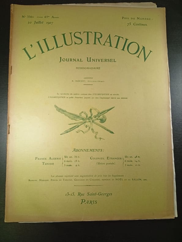 L'illustration revue du 20 juillet 1907, in-4 broché, p29p40 avec ses annonces publicitaires - très bon état
