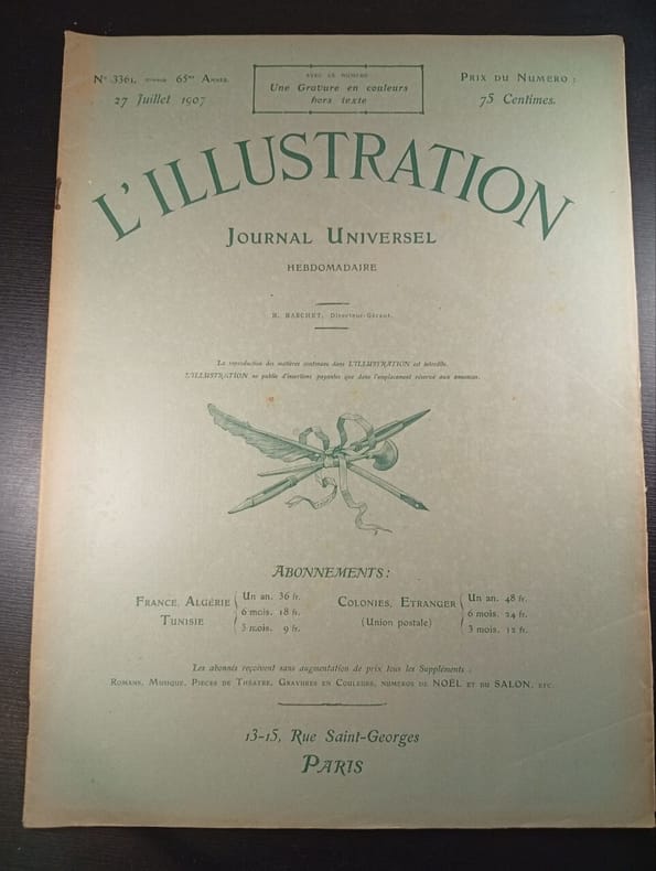 Au bureau du journal. 27 juillet 1907. In-Folio. Broché. Bon état, Couv. convenable, Dos satisfaisant, Intérieur frais. 16 pages environ illustrées de nombreuses gravures en noir et blanc - Paginées de 50 à 64 - avec couverture et pages publicitaires.. . . . Classification Dewey : 70.4417-L'illustration / Figaro salon