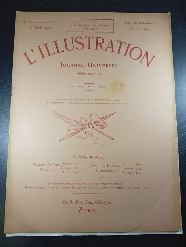 Au bureau du journal. 3 aout 1907. In-Folio. Broché. Bon état, Couv. convenable, Dos satisfaisant, Intérieur frais. 16 pages environ illustrées de nombreuses gravures en noir et blanc - Paginées de 66 à 80 - avec couverture et pages publicitaires + 1 gravure en couleur hors texte.. . . . Classification Dewey : 70.4417-L'illustration / Figaro salon