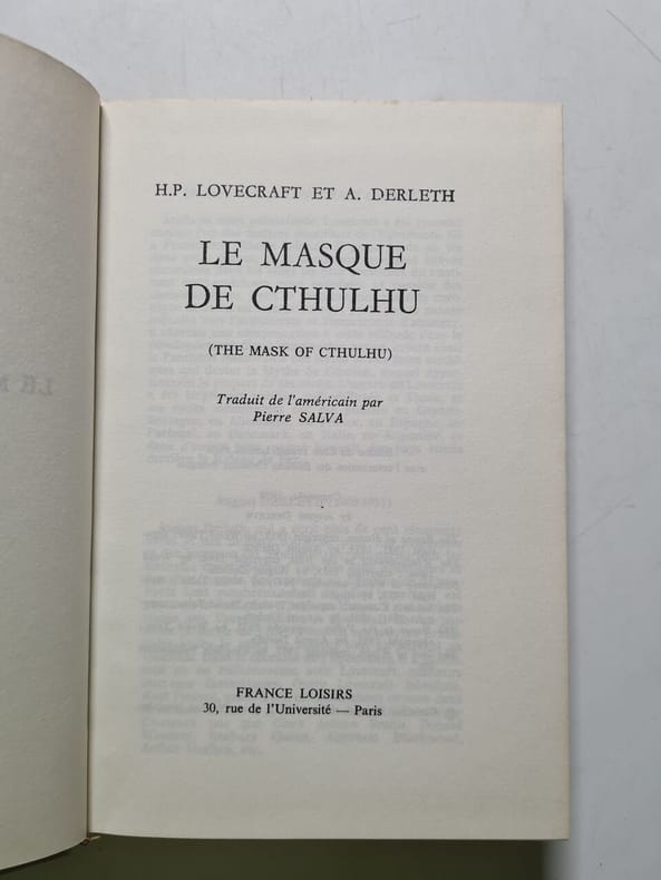 Editions Christian Bourgois / Collection " Dans l'Epouvante " 1972. In-8 broché de 301 pages au format 12 x 20 cm. Couverture noire à rabats, avec titre imprimé en blanc. Contient six nouvelles écrites par August Derleth, exécuteur testamentaire d'Howard Phillips Lovecraft, d'après des brouillons ou des thèmes laissés par ce dernier. Superbe état, proche du neuf. Edition originale traduite de l'anglais par Pierre Salva. Rare aussi frais.