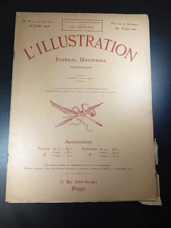 Au bureau du journal. 28 juillet 1906. In-Folio. Broché. Bon état, Couv. convenable, Dos satisfaisant, Intérieur frais. 16 pages environ illustrées de nombreuses gravures en noir et blanc - Paginées de 54 à 68 - avec couverture et pages publicitaires.. . . . Classification Dewey : 70.4417-L'illustration / Figaro salon