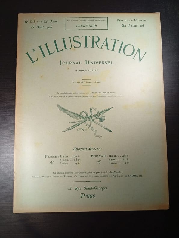 Au bureau du journal. 25 aout 1906. In-Folio. Broché. Bon état, Couv. convenable, Dos satisfaisant, Intérieur frais. 16 pages environ illustrées de nombreuses gravures en noir et blanc - Paginées de 118 à 132 - avec couverture et pages publicitaires.. . . . Classification Dewey : 70.4417-L'illustration / Figaro salon
