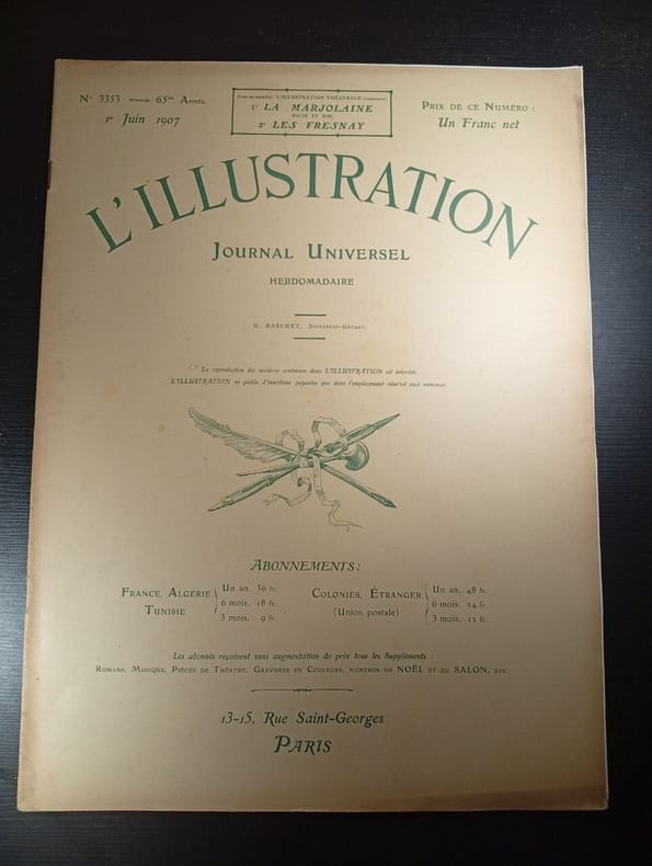L'illustration revue du 1er juin 1907, in-4 broché, p353p364 sans ses annonces publicitaires et avec son hors texte sur l'exposition portraits de femmes à Bagatelle - très bon état