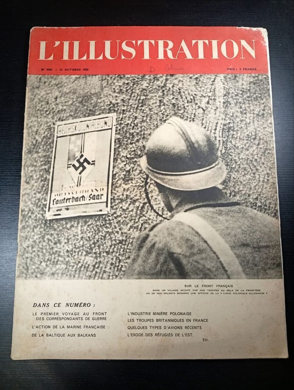 L'ILLUSTRATION. 21 octobre 1939. In-4. Broché. Bon état, Couv. convenable, Dos satisfaisant, Intérieur frais. 16 pages environ illustrées de nombreuses gravures en noir et blanc - Paginées de 179 à 206 - avec couverture + pages publicitaires noir et blanc ( ) - 2 photos disponibles: la page du numéro et une page publicitaire.. . . . Classification Dewey : 70.4417-L'illustration / Figaro salon
